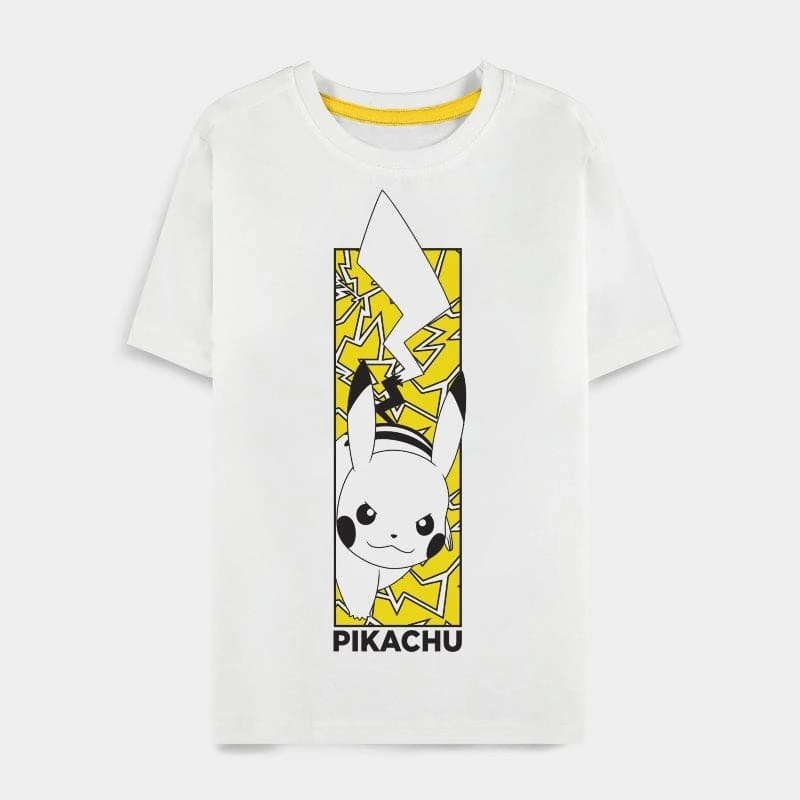 Show that you gotta catch βem all in our white cotton t-shirt with screen-printed Pikachu graphic and yellow contrast taping in the neck.