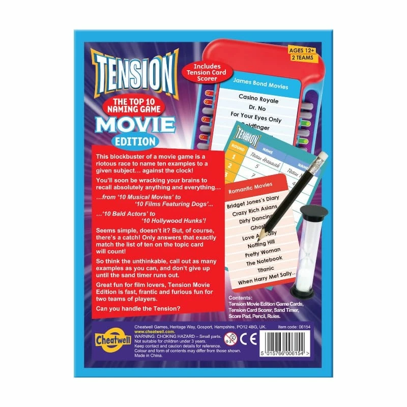 Challenge your movie knowledge with this official Tension Movie Edition! Give ten examples for the subject until time runs out to beat your friends and family to victory!
