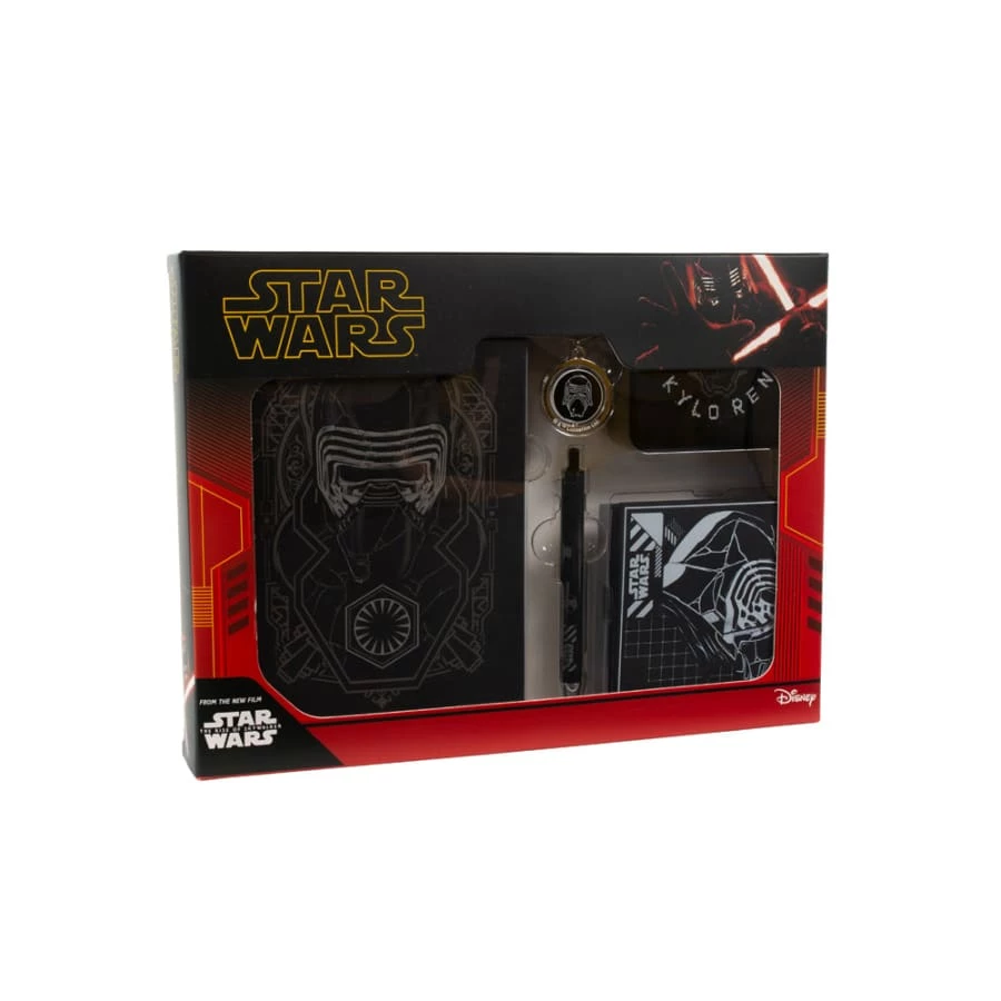 Entice a loved one into the dark side with this exclusive Star Wars gift set! Whilst the accessories in this pack might not awaken your force powers, it does have all the essential tools needed for the day-to-day lives of Sith Lords. Need to spice up your keys? Why not do so with the Kylo Ren spinner keyring. Write down your strategies against the resistance with the premium A5 notepad and pen, whilst keeping your feet warm by sporting the Kylo Ren themed socks. Protect your surfaces from spillages with the set of 4 premium silicone coasters, each with a unique Stormtrooper helmet design.