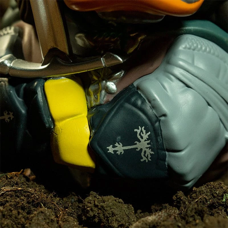 “If by my life or death I can protect you, I will. You have my sword…” The king has arrived in the pond. Armed with the legendary sword, Anduril, Aragorn shows no fear to take the fight to Mordor for the people of Middle Earth – even while as a duck! Coming boxed in an awesome displayable ‘Lord of the Rings’ tub display stand, this one of a kind collectible is great for fans of the series to stock up on.