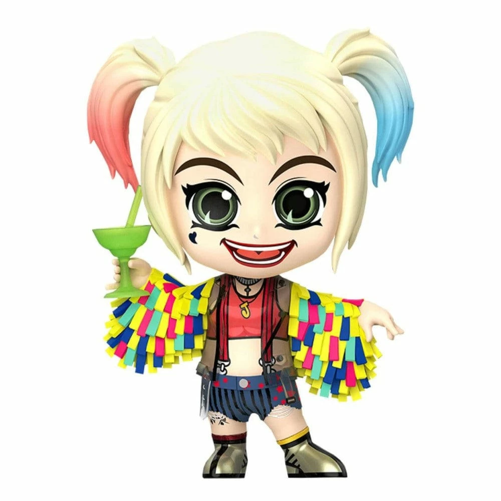Display your love for the maiden of mischief with this official Harley Quinn Cosbaby figure featuring an eccentric outfit with confetti sleeves!