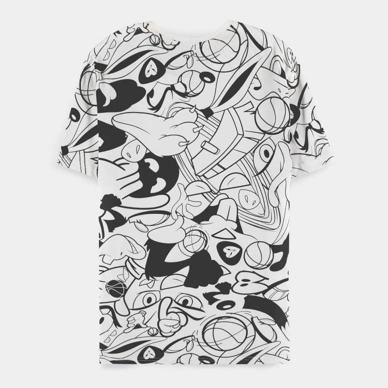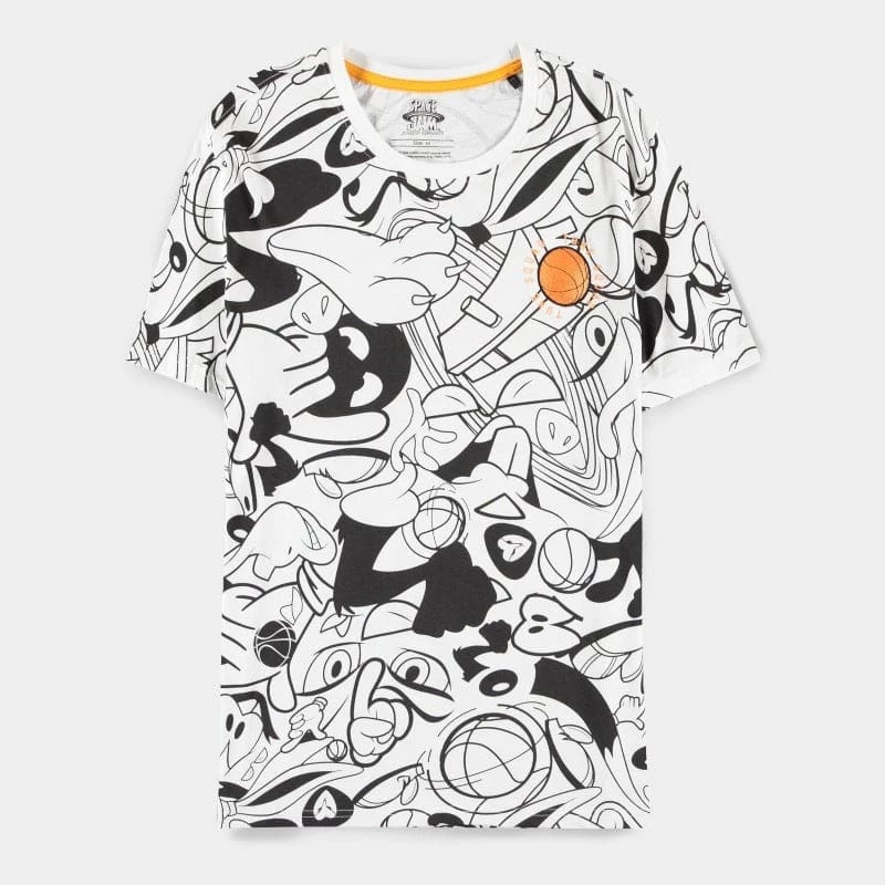 Flaunt your love of Space Jam with this sleek official Warner Bros. all-over-print t-shirt! Featuring a vibrant basketball logo against the monochrome print, this premium piece of merchandise is the perfect addition to your wardrobe!